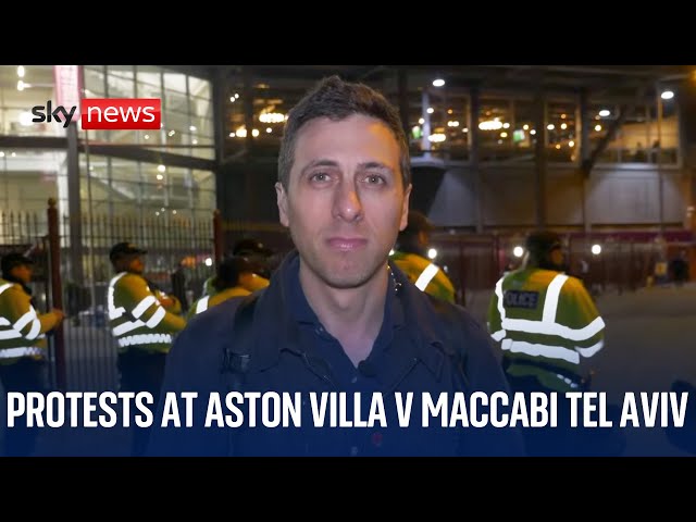 Protests ahead of Aston Villa v Maccabi Tel Aviv | Rob Harris reports from Villa Park
